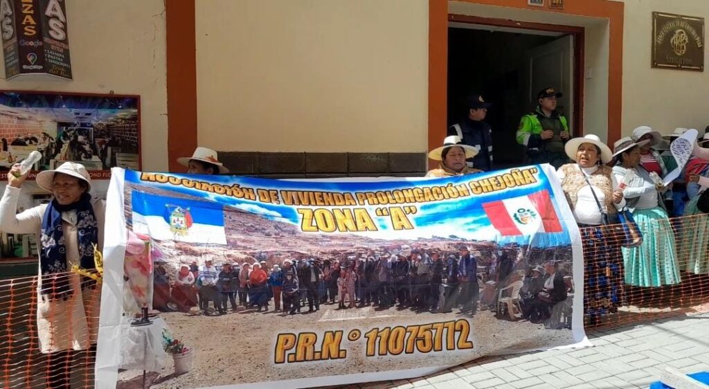 Vecinos del barrio Chejoña, prolongación zona “A” de la ciudad de Puno, realizaron una protesta en el frontis del gobierno regional de Puno, exigiendo la construcción de un muro de contención en el taller del gobierno regional, que está generando constantes accidentes en la zona.